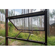 В базовую комплектацию входят оцинкованный каркас, раздвижная дверь-купе, форточка в коньке и весь необходимый крепёж для сборки.
