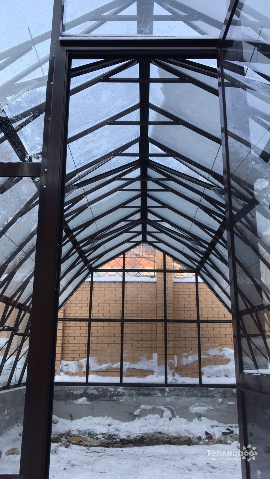 Ширина 4,5 м. из специального оцинкованного стального профиля под стекло.