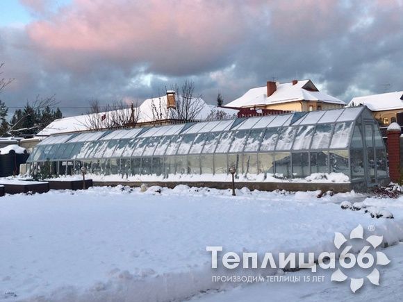 Это теплица премиум класса, изготовленная из поликарбоната, собранная на алюминиевом каркасе, которая пользуется высоким спросом на рынке.
